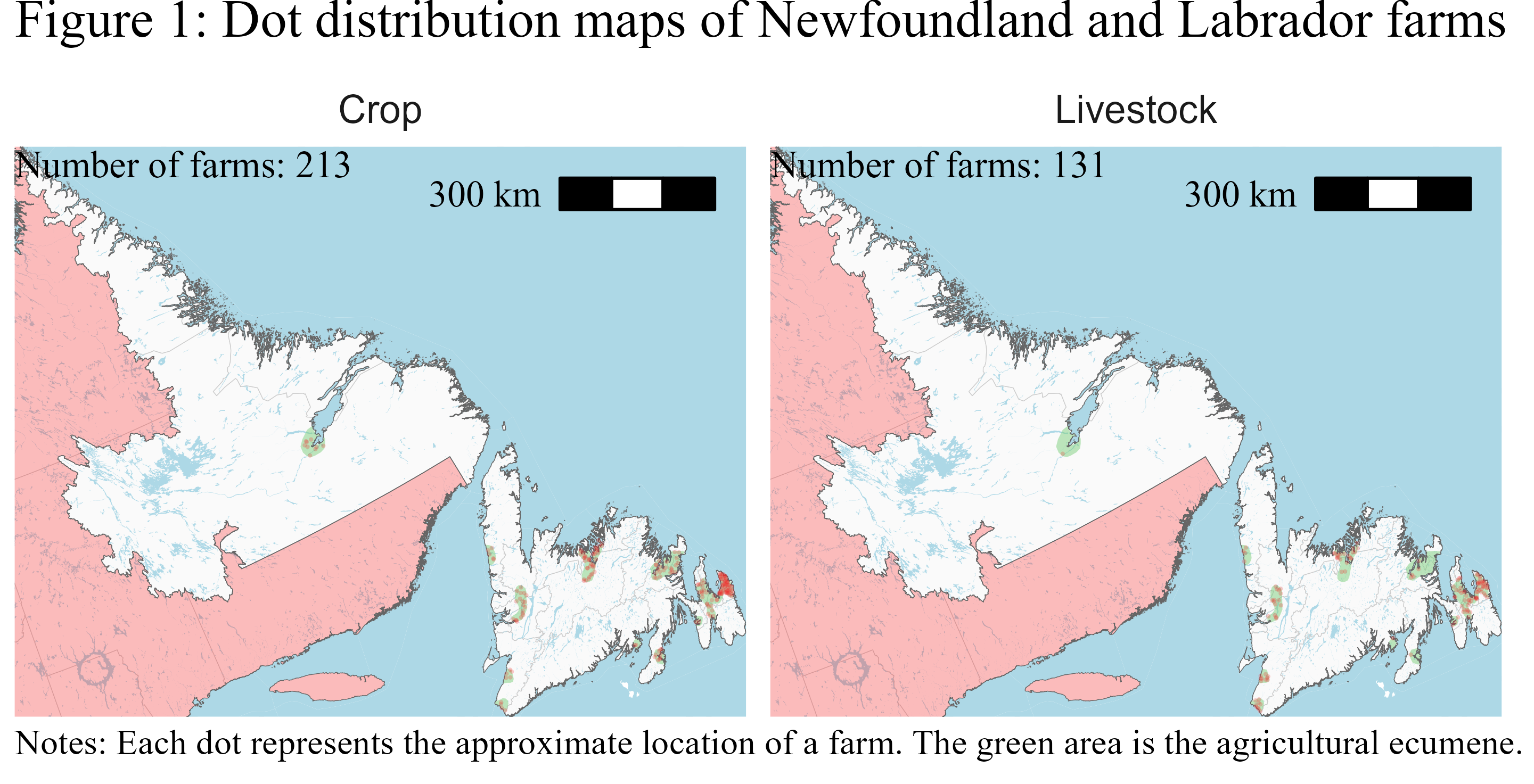 According to the Census, there were 344 farms in Newfoundland and Labrador in 2021. Farms are located on the coast with the largest concentration around Saint John in the East. There are farms in Labrador but I suspect that most are greenhouses.