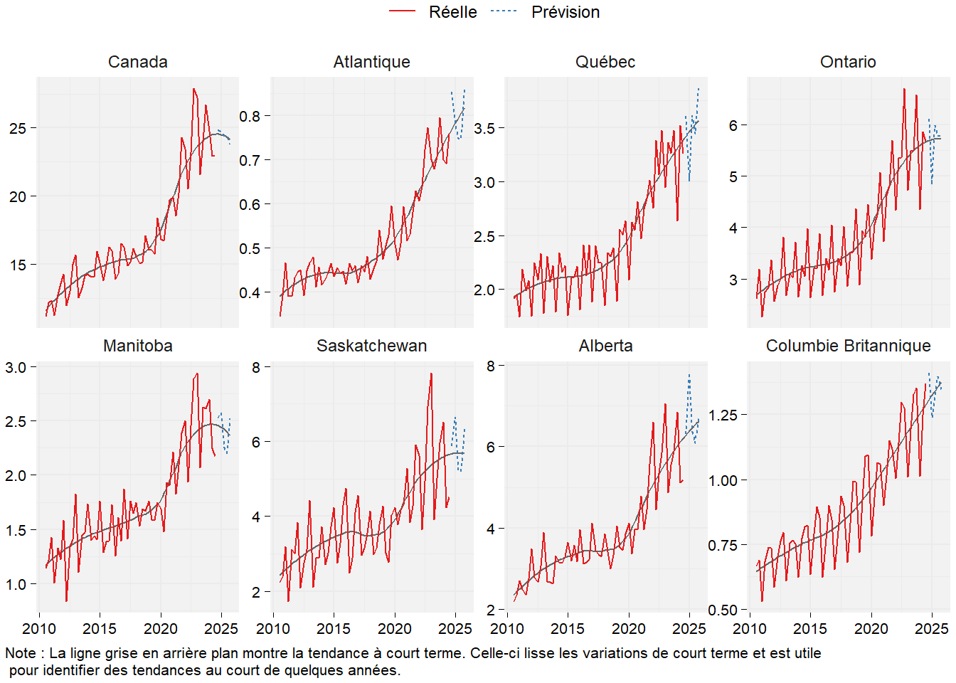 Figure 6: Recettes totales trimestrielles (milliards de CAD)